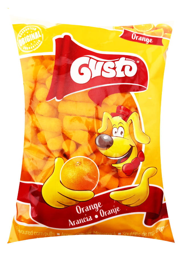 Baicoi, DN1 nr 12, 105200, RumänienExtrudierter Snack aus Maisgriess mit Orangen-Geschmack