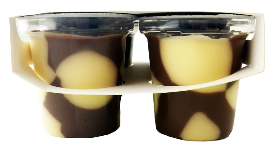 Zutaten: Schokoladenpudding (MAGERMILCH, SAHNE, Zucker, modifizierte Stärke, 1,4% Kakaopulver*, Verdickungsmittel: Carrageen), Vanillepudding ( MAGERMILCH, SAHNE, Zucker, modifizierte Stärke, natürliches Vanillaroma, Verdickungsmittel: Carrageen, färbendes Lebensmittel: Karottenkonzentrat, Kürbiskonzentrat.