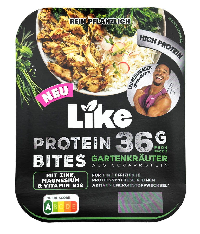 Zutaten: Wasser, Panade 25,4% (WEIZENMEHL, Sonnenblumenöl, Wasser, WEIZENKLEIE, Salz Zucker, Hefe, Margarine, GERSTENMALZEXTRAKT), SOJAPROTEINKONZENTRAT 9,5%, texturiertes Pflanzenprotein 4,5% (SOJAPROTEINISOLAT 2,2%, WEIZENPROTEIN 1,5%, Stärke (Mais, WEIZEN), Erbsenprotein 0,1%), Sonnenblumenöl, natürliche Aromen, glutenfreie HAFERSPELZFASERN, Verdickungsmittel: Methylcellulose, Salz.