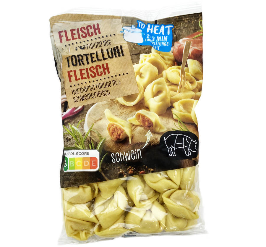 Zutaten: 71% Teig( HARTWEIZENGRIESS, Wassser, VOLLEI, Sonnenblumenöl) Füllung 29%( HARTWEIZENGRIEß, 32% Spinat, 12% Ricott-Molkenkäse (SÜßMOLKE, SAHNE, MILCH, Salz, Säurungsmittel: Citronsäure,), Gouda(MILCH, Speisesalz, Säurungskulturen mikrobielles Lab), Zwiebeln, jodiertes SPeisesalz (Speisesalz, Kaliumjodat), Knoblauch, Zucker, Gewürze, Kräuter).
