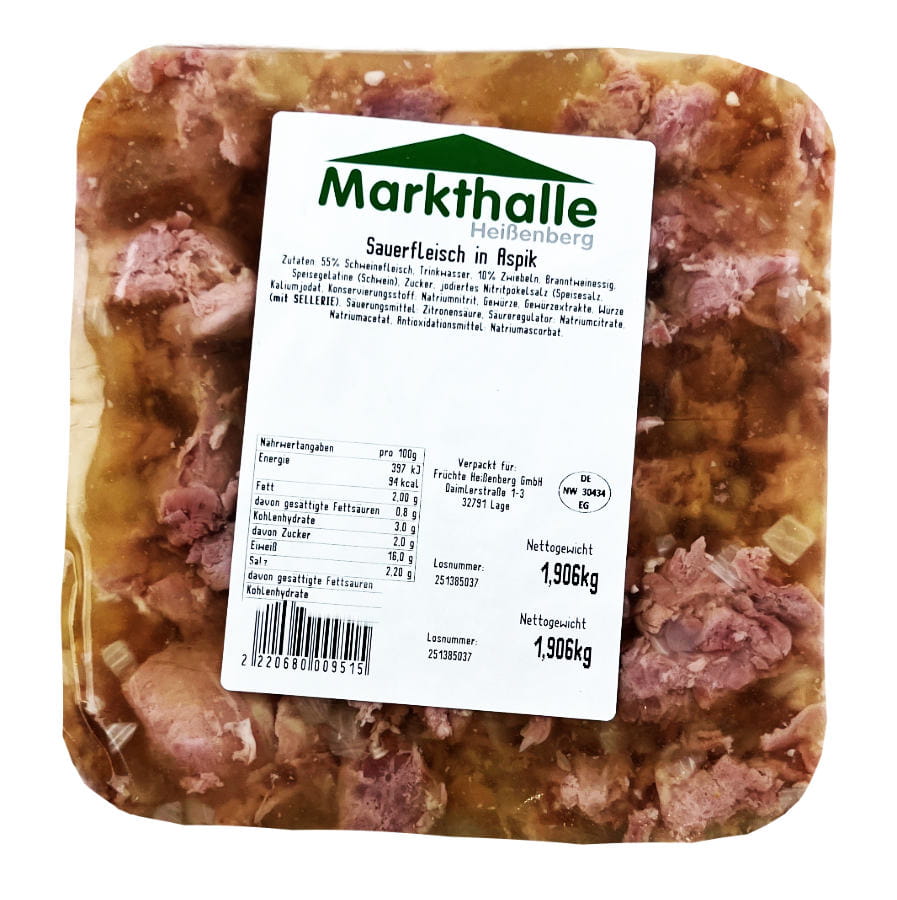 Zutaten:87% Schweinefleisch, Speck, Trinkwasser, Speisesalz, Gewürze (enthält SENF), Gewürzextrakte, Dextrose, Stabilisator: Diphosphate, Antioxidationsmittel: Ascorbinsäure, Konservierungsstoff: Natriumnitrit, Schafseitling, Buchenholzrauch.