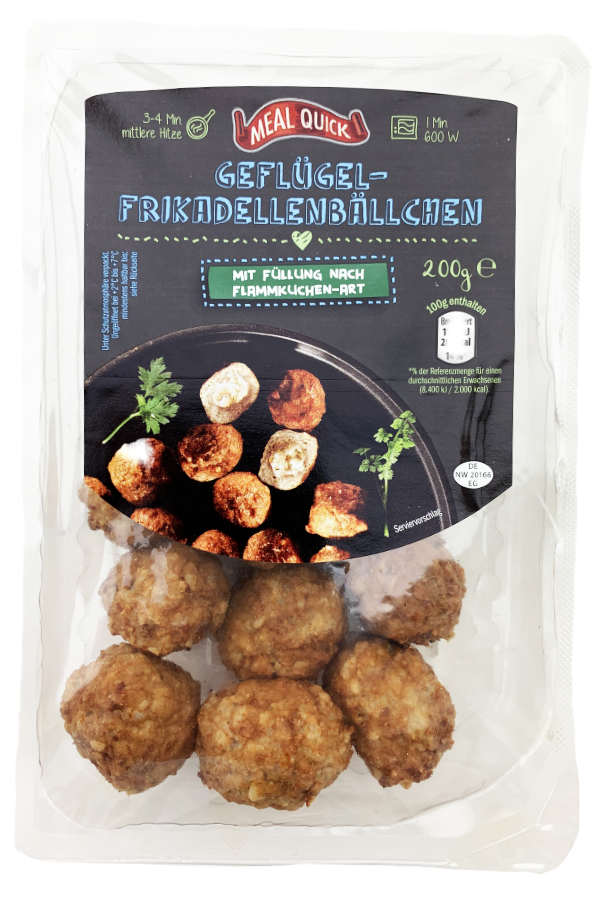 Geflügel-Frikadellenbälchen mit Füllung nach Flammkuchen-Art, küchenfertig gebraten