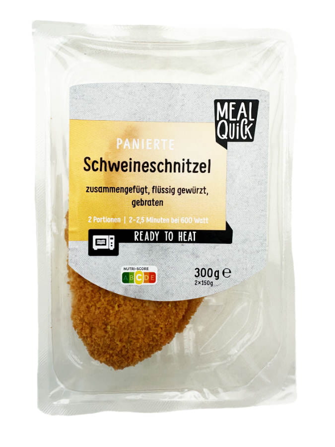 In der Mikrowelle: Die Schnitzel bei 600 Watt ca. 1,5-2 Minuten erhitzen.