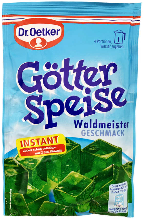 Dr. Oetker´s leckere Götterspeise in der Geschmacksrichtung Waldmeister.